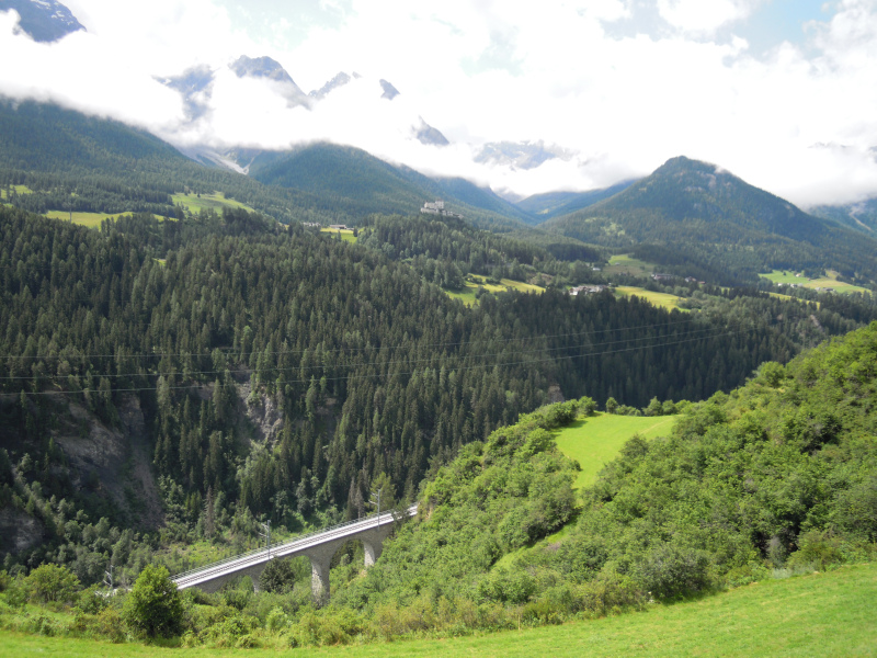 Photo 3 / 4 : La vallée de l'Inn près de Scuol avec le château de Tarasp
